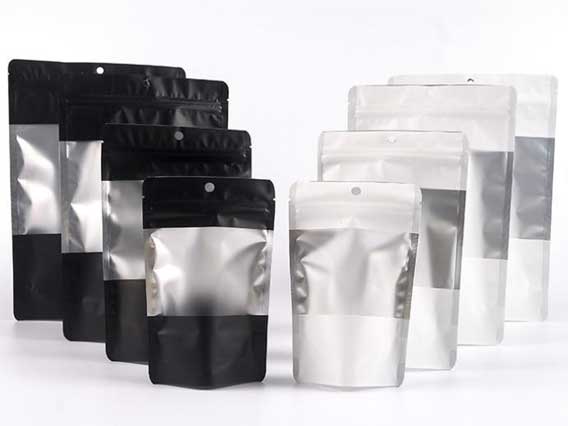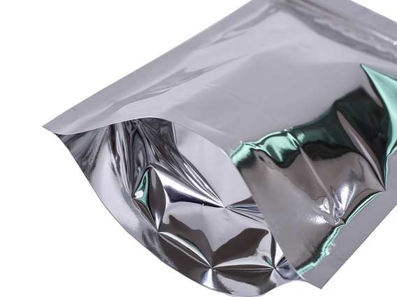 鍍鋁袋材質結構VMPET/CPE(全鍍鋁膜/聚乙烯薄膜)熱封性好,撕裂度好,拉力強,手感比較軟,整體顏色為銀色不透明,亮度較高,內置物不可見。可做成多種款式:平口袋式、自封式(密實袋/拉鏈袋)、信封式、信封自粘式、連體式、立體式等。